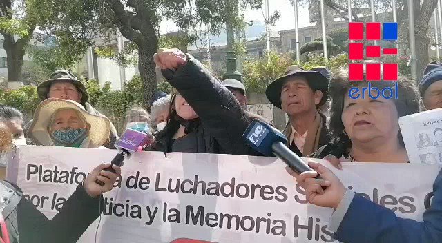 Plataforma de luchadores sociales y sobrevivientes de la dictadura militar protesta frente al Palacio de Gobierno. Exige justicia. Lleva 10 años en una vigilia frente al Ministerio de Justicia. https://t.co/LR933b7e7U