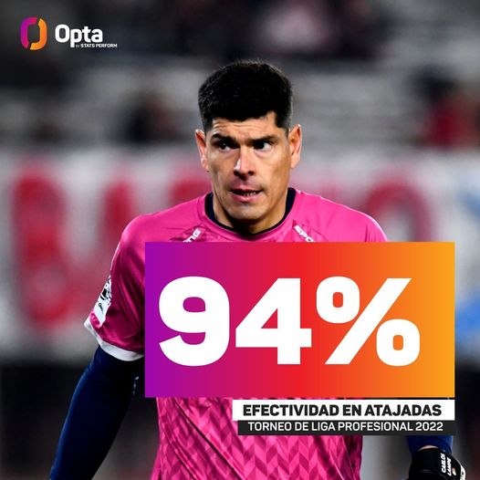 17 – Carlos Lampe 🇧🇴 atajó 17 de los 18 remates al arco que recibió en Atlético Tucumán por el Torneo LPF 2022 🇦🇷, con una efectividad del 94.4%. Es el promedio más alto para un arquero del certamen con más de un partido disputado. Infranqueable. Nota: @optajavier