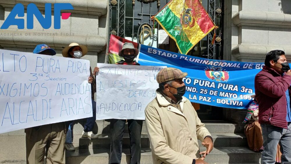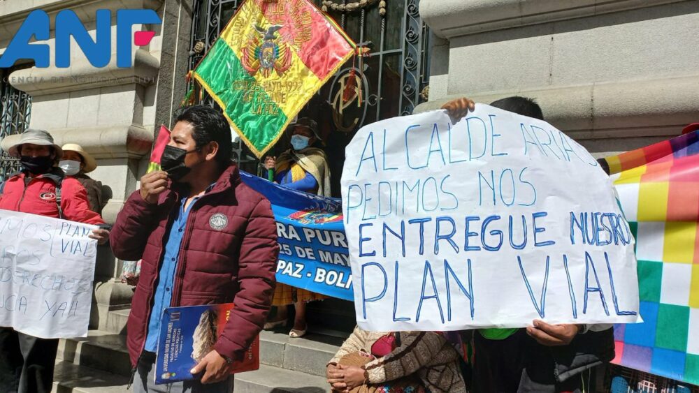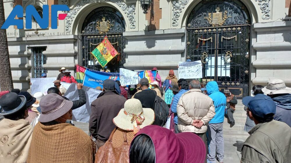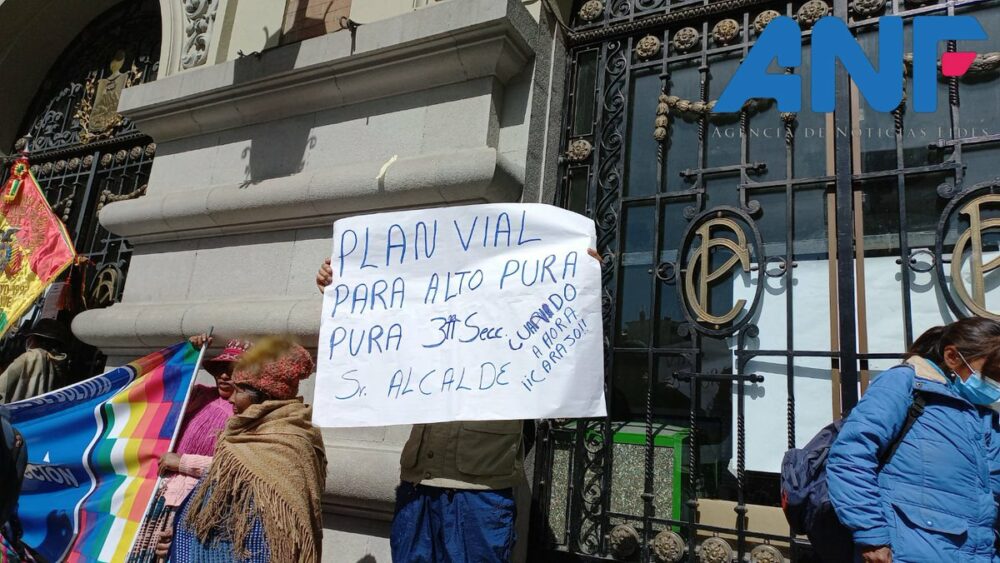 🔵 #Ahora | Vecinos de la zona Alto Pura Pura de #LaPaz protestan frente al Palacio Consistorial. Exigen un plan vial y piden audiencia con el alcalde @ivanariasduran. pic.twitter.com/bIYVBwIc1t