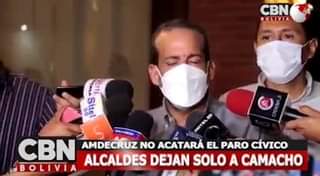 Alcaldes de Santa Cruz dejan solo a Camacho (AMDECRUZ) en una reunión, decidieron no acatar el Paro Cívico, anunciado por Luis Fernando Camacho para este 25 de Julio.