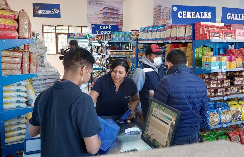 Gobernador Humberto Sánchez en la inauguración de supermercado EMAPA en el Distrto 9 de la zona Sud de Cochabamba, destacó la apertura de una nueva tienda para que la población pueda abastecerse de los productos de primera necesidad para la canasta familiar.