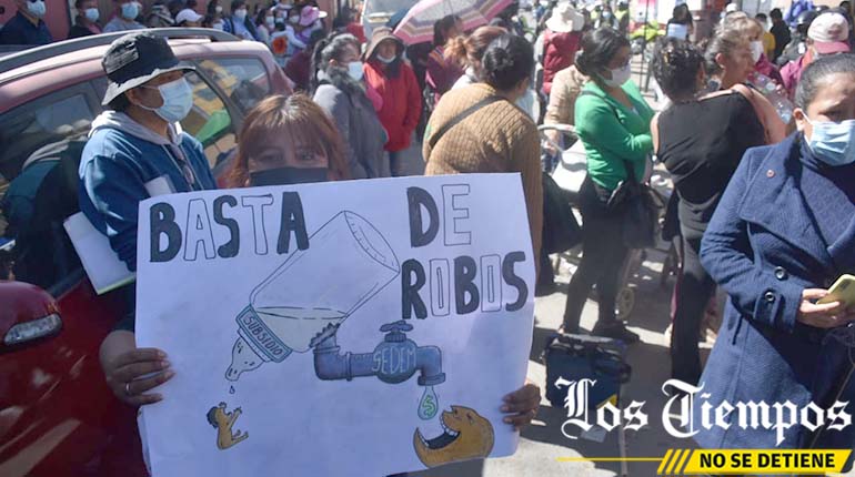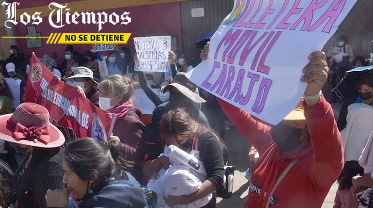 🔵 #ANF | En #Cochabamba también se registró hoy una protesta de madres de familia que son beneficiarias del subsidio prenatal. Las mujeres se concentraron en puertas del #Sedem para exigir la implementación de la billetera móvil. (Fotos: Los Tiempos) pic.twitter.com/wNTXpzsOT2