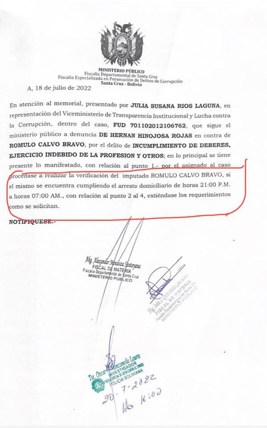 La Policía no intentaba detener a Rómulo Calvo, verificaba su arresto domiciliario. La Fiscalía muestra el documento que respalda la verificación