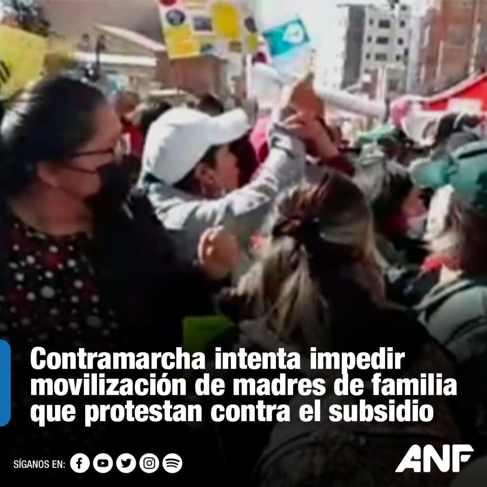 🔵#ANF | #LaPaz La movilización de las beneficiarias se concentró en el #Sedem, pero apareció un grupo de mujeres en rechazo de la protesta.