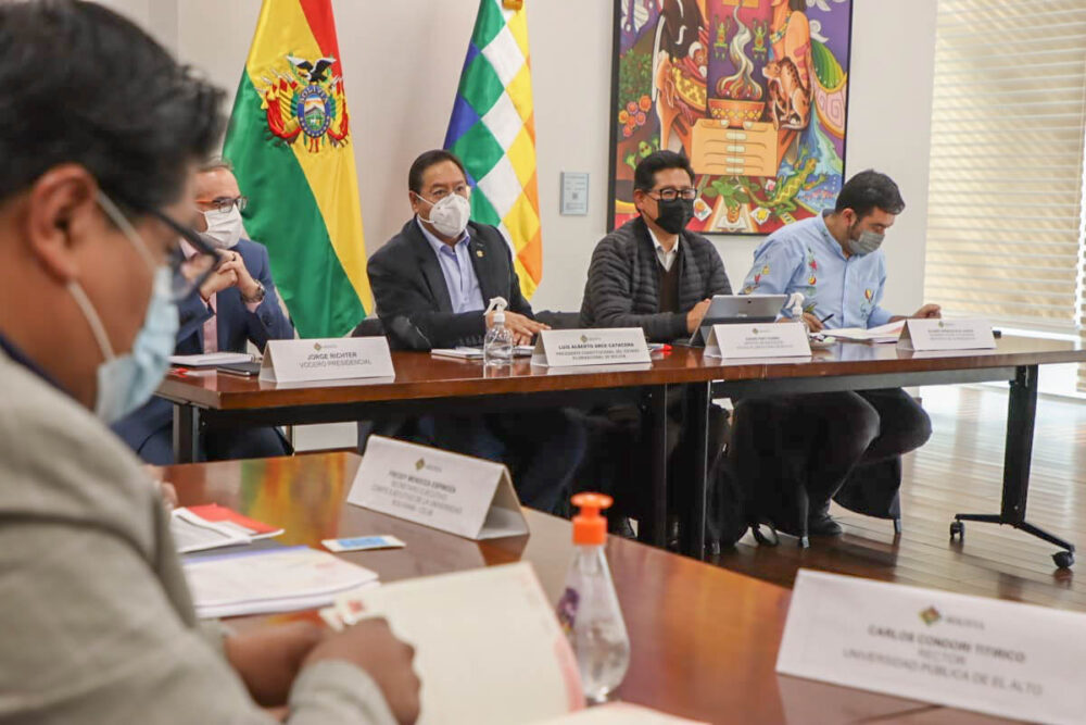 Sostuvimos una productiva reunión con los rectores y autoridades del sistema universitario de #Bolivia. Estamos decididos en fortalecer la investigación en nuestras universidades públicas, para que sea un importante aporte al país. Haremos permanente seguimiento a ese proceso. https://t.co/qeL9ZaIrjz