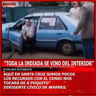 El dirigente cívico de Warnes, Choco Gutiérrez, manifestó “No queremos Censo para el 2024, queremos Censo ya!, porque toda la indiada qué se ha venido del interior ha sumado la gente de Santa Cruz”.
