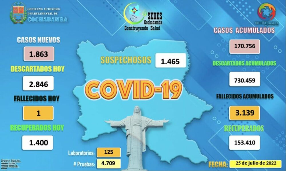 🔵 #ANF | #Salud El Sedes de #Cochabamba reporta que este lunes 1.863 personas dieron positivo a #COVID19 y una falleció. https://t.co/HHSXrrRxTN