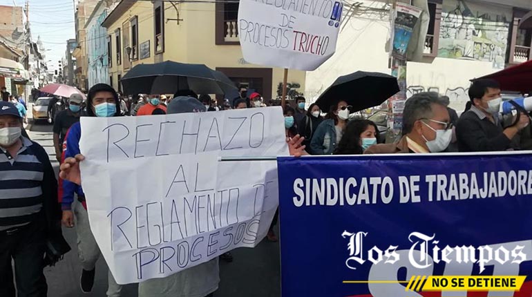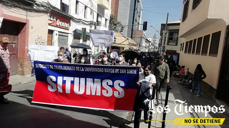 🔵 #ANF | #Cochabamba El Sindicato de Trabajadores de la Universidad Mayor de San Simón (SITUMSS) se movilizó en una marcha de protesta en rechazo a las nuevas reformas al interior de esta institución. (Vía Los Tiempos) pic.twitter.com/gCTiLSpUeH
