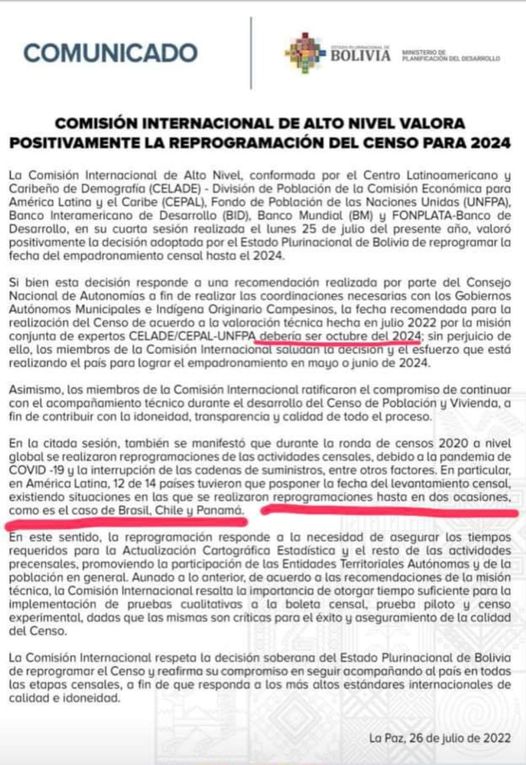 Y recuerdan que tras la pandemia en Brasil, Chile y Panamá el censo se reprogramó dos veces.