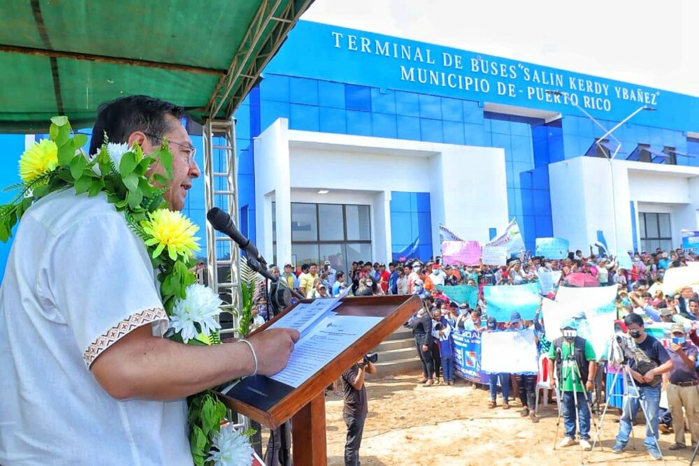 Hoy entregamos la moderna Terminal de Buses Salin Kerdy Ybañez en nuestro municipio de Puerto Rico, #Pando. La obra demandó una inversión de Bs7,9 millones. Esta hermosa tierra debe convertirse en la capital económica e industrializadora de frutos amazónicos. ¡Viva Pando! https://t.co/IZUu9jeN4i