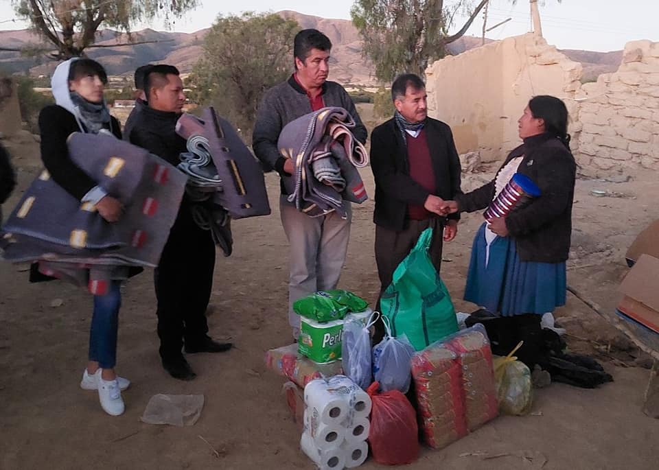 Gobernador Humberto Sánchez lleva ayuda solidaria a dos mujeres que sobreviven día a día junto a sus hijos en la comunidad Villa Carreño del municipio de Tarata.