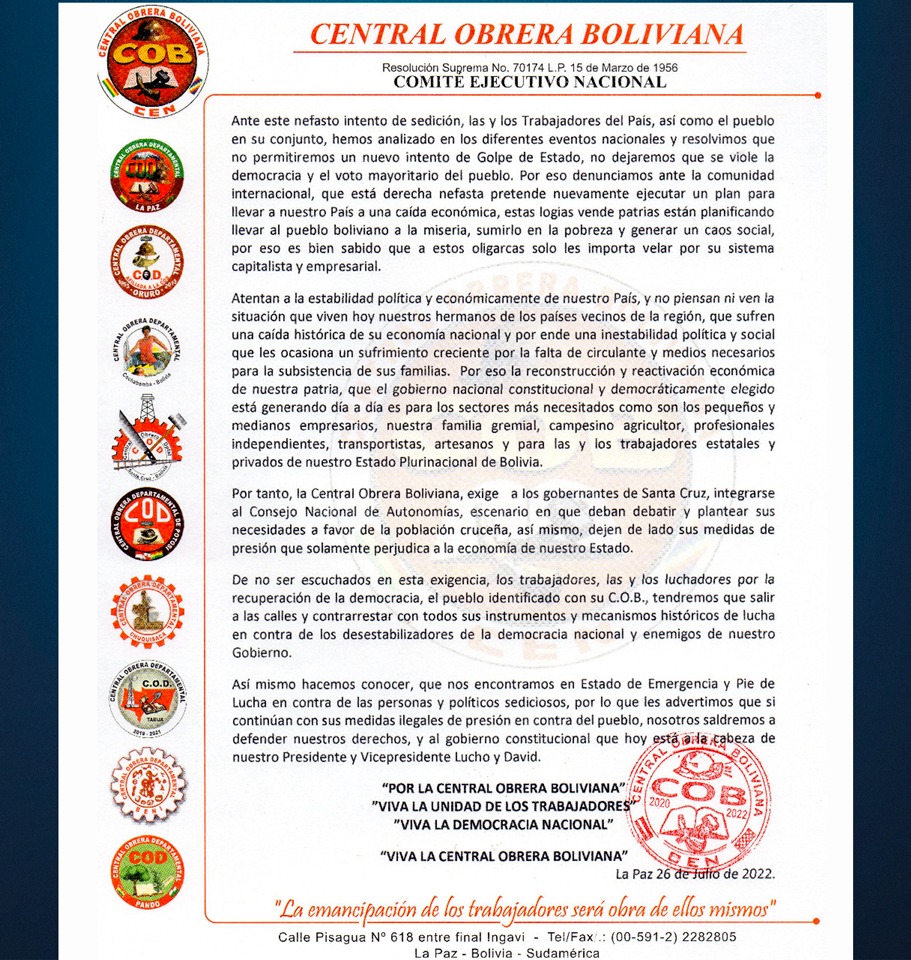 Estamos seguros que el pueblo boliviano no volverá a permitir que intereses mezquinos de grupos privilegiados intenten bloquear el crecimiento del país, buscando esconder su incapacidad, sin argumentos técnicos.