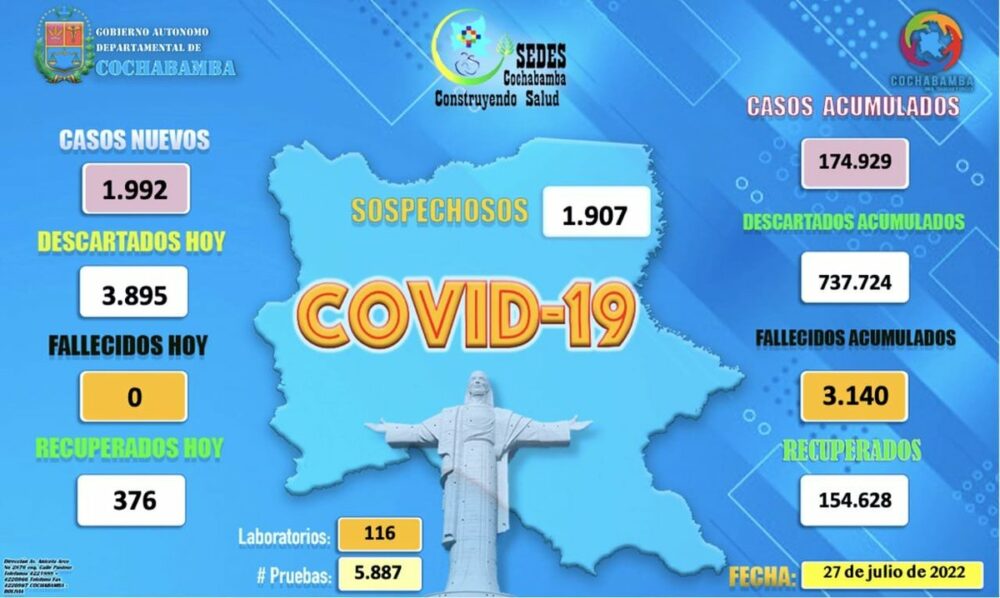 🔵#ANF | #Salud Este miércoles, #Cochabamba registró casi 2.000 nuevos contagios de #COVID19 y 376 recuperados. pic.twitter.com/BwVxocGsXP