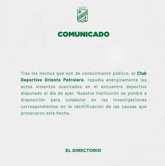 🔵 #Ultimo | Tras los hechos de violencia que protagonizaron hinchas refineros durante el partido con Guabirá por la Liga, el club cruceño @cdopetrolero expresó su repudio a esos actos y se puso a disposición de las autoridades para identificar a los responsables. https://t.co/rCuT79mYSv