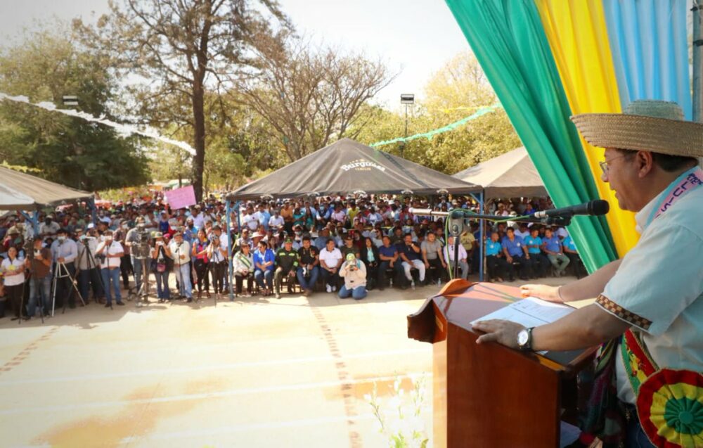 Estamos en el valeroso municipio de Cuatro Cañadas, #SantaCruz, en su 36 aniversario. No llegamos con las manos vacías, entregamos más de 560 pólizas de seguro agrario a nuestros productores. #Bolivia demostró al mundo entero que es capaz de producir lo que consume.