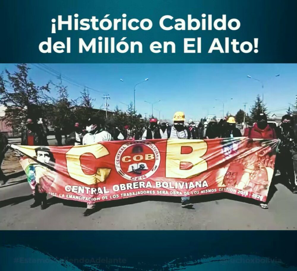 (Hilo) Como hoy, 28/07/2020, el pueblo boliviano se organizó en defensa de la democracia y de una Patria digna y soberana. El Cabildo del Millón le dijo ¡basta! a los golpistas que querían perpetuarse en el Gobierno y restituir el modelo neoliberal para saquear nuestro Estado. https://t.co/8Fw4ahwFRI