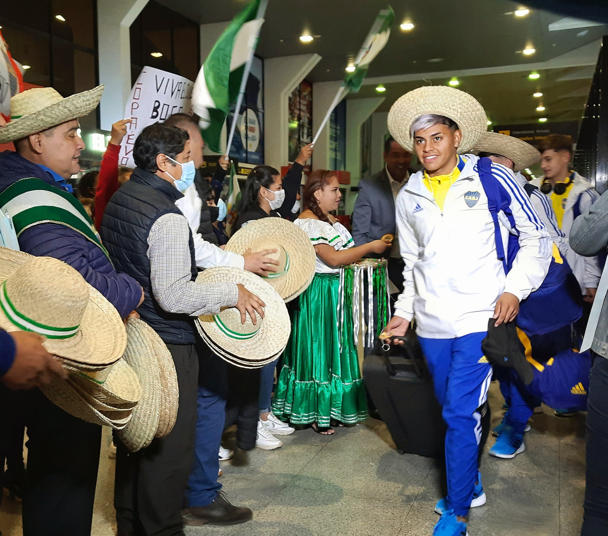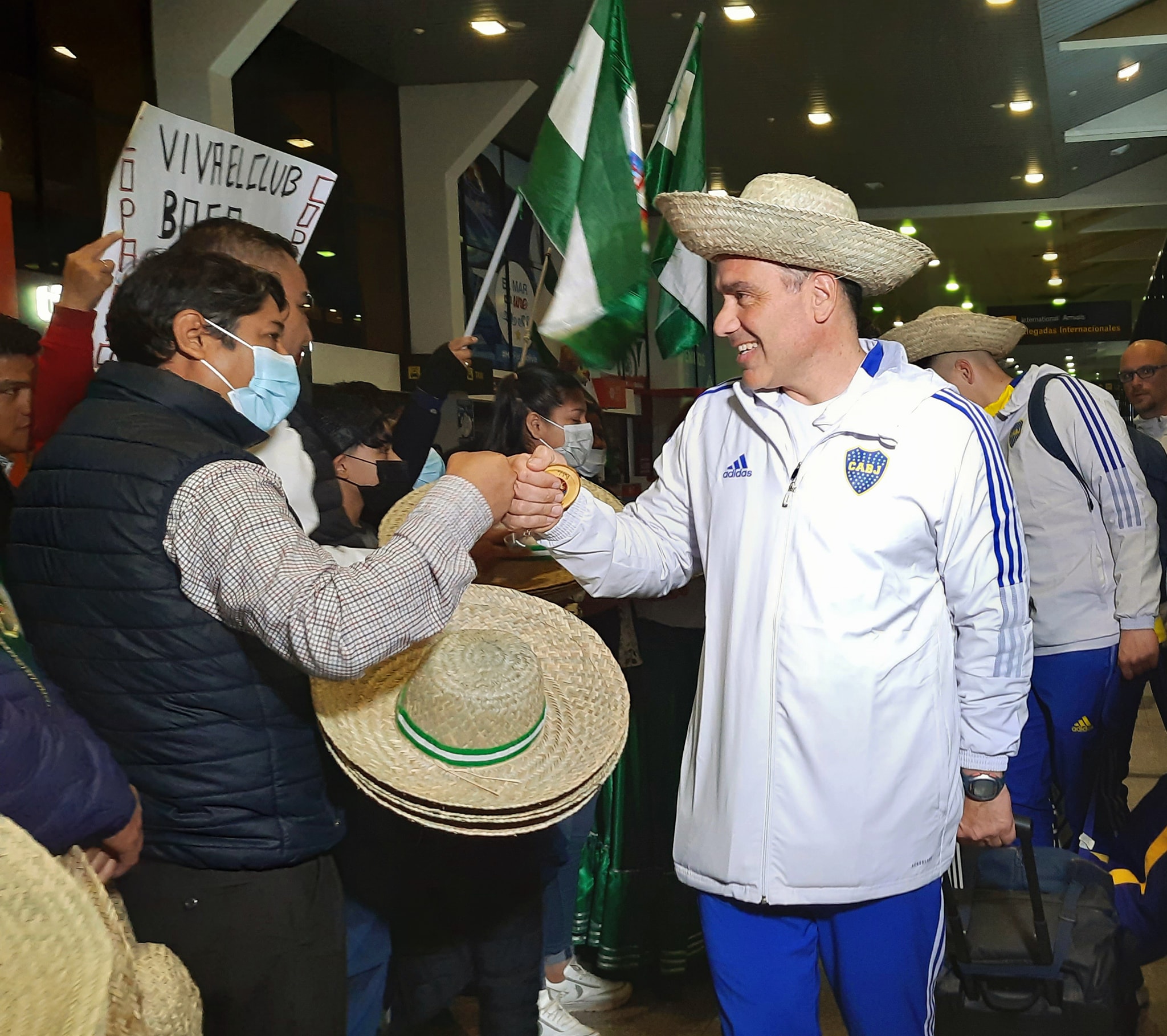 Entre banda, aplusos y cariño del pueblo cruceño Boca Juniors de Argentina fue recibido en el aeropuerto de Viru viru