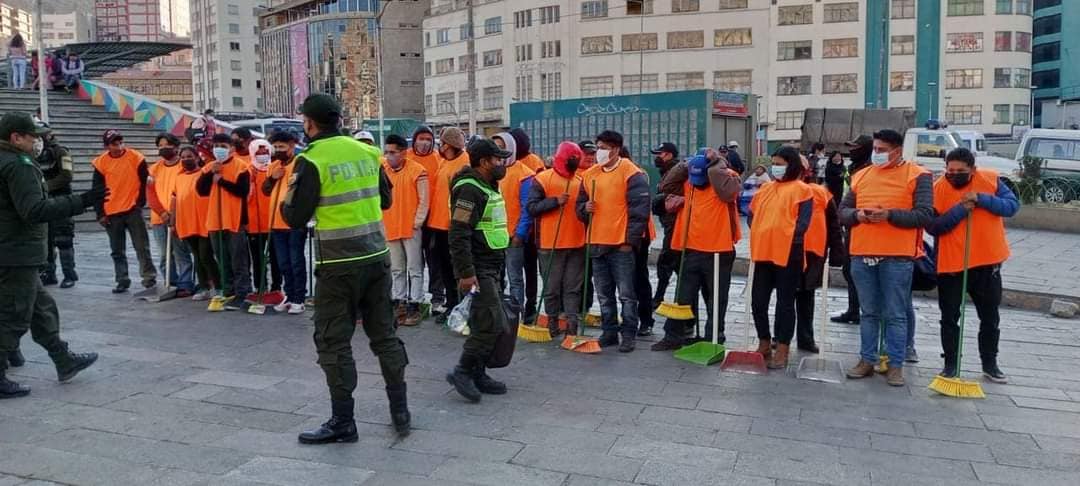 El ministro de Gobierno, Eduardo del Castillo, informó que para dar al pueblo una alta sensación de seguridad ciudadana, las personas que consumían bebidas alcohólicas en vía pública fueron arrestadas y ahora se encuentran realizando trabajo comunitario en diversas zonas de la ciudad de La Paz en el marco del Plan de Recuperación de Espacios Públicos.