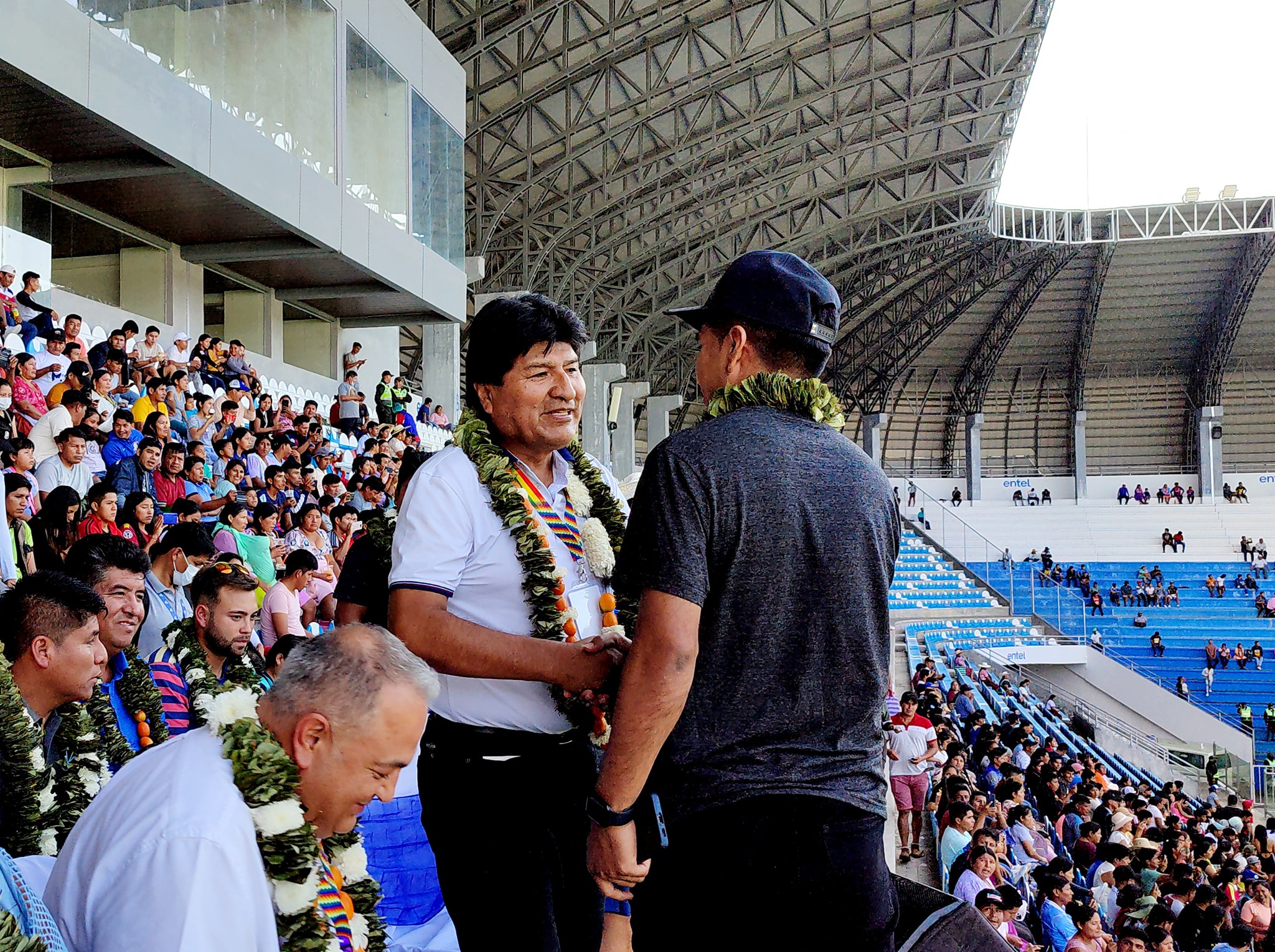 #EnImágenes | Con el realce del presidente del Senado, Andrónico Rodríguez y otras autoridades nacionales, departamentales, locales y dirigenciales, inició hoy la Copa Evo 2022, de Fútbol Sub-17, en el estadio Bicentenario de Villa Tunari, en el Trópico cochabambino de Bolivia, y ante miles de espectadores que llegaron a ese escenario deportivo de primer nivel.