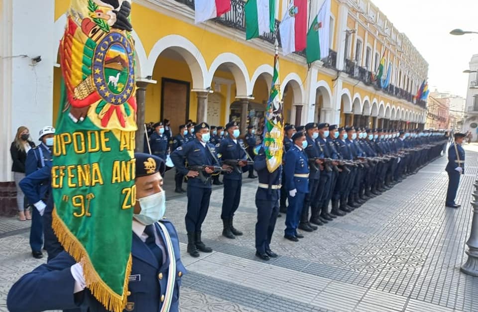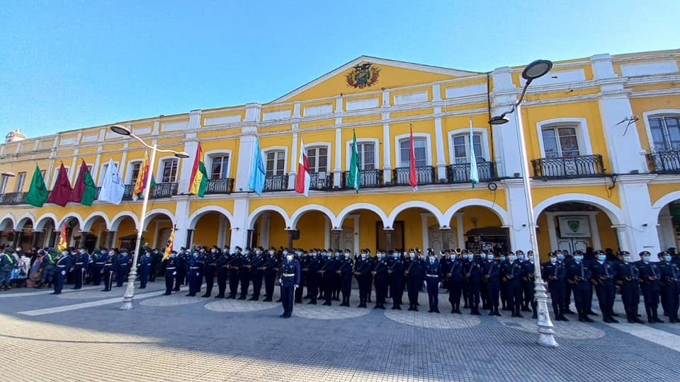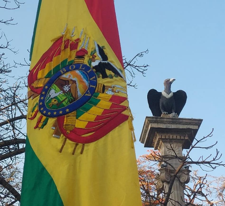 Con fervor cívico, patriótico izamos los #SímbolosPatrios, dando inicio a las #FiestasPatrias de la fundación de #Bolivia en la Plaza 14 de Septiembre de Cochabamba.