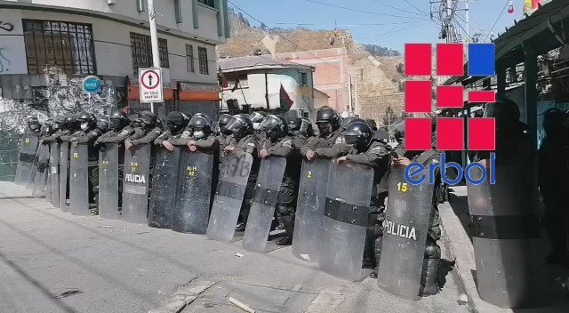 #LaPaz | Fuerte resguardo policial en inmediaciones del Mercado paralelo de #Adepcoca. Las bases de sector de Freddy Machicado piden conformar un Comité de Autodefensa para cerrar los cuestionados predios pic.twitter.com/uD5sJya9Jv