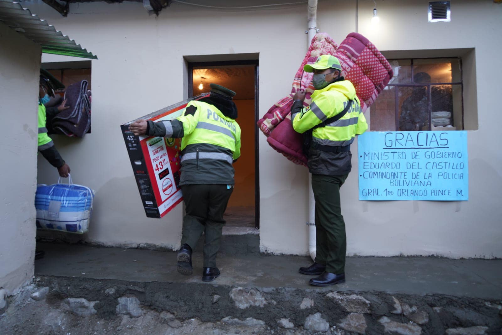 El ministro de Gobierno entregó en La Paz a la abuelita, Agustina Yujra, enseres, muebles, implementos de cocina, además de refaccionar su hogar para que pueda recuperar todo lo que perdió, después de que hace días su hogar le fue arrebatado por malas decisiones judiciales.