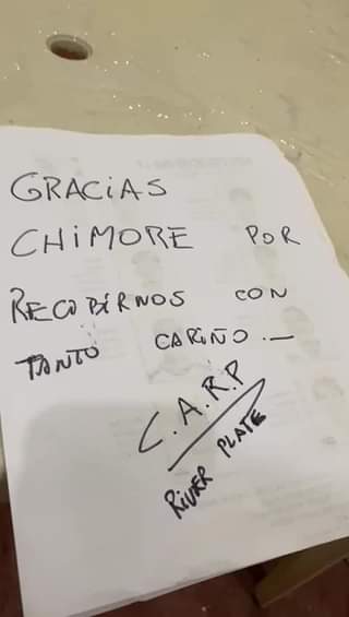#RKC #CopaEvo2022 #RiverPlate /// Jugadores del River Plate, al terminar el partido, limpiaron su camerino y dejaron una nota de agradecimiento por la atención de Chimore.