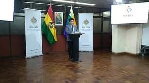 El ministro de Obras Públicas, Servicios y Vivienda, Edgar Montaño, brinda conferencia de prensa sobre la Aeronave Boeing 737-800NG