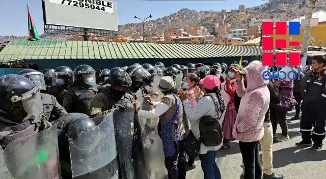 Mujeres cocaleras encabezaron intento de pasar el cerco policial. Exigen el cierre del mercado paralelo de Adepcoca. https://t.co/bdGbBHGC55