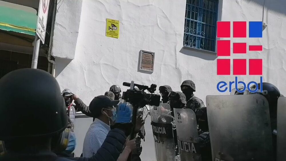 #AHORA Cocaleros llegan cerca de la FELCC para exigir la liberación de los aprehendidos. Un contingente policial impide el paso y resguarda el lugar pic.twitter.com/XVgu9uqRr2