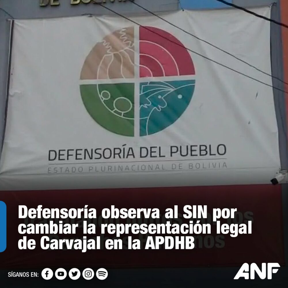🔵#ANF | El Servicio de Impuestos Nacionales (SIN) anuló la representación legal de Carvajal sobre la APDHB y se la entregó a un afín al MAS.
