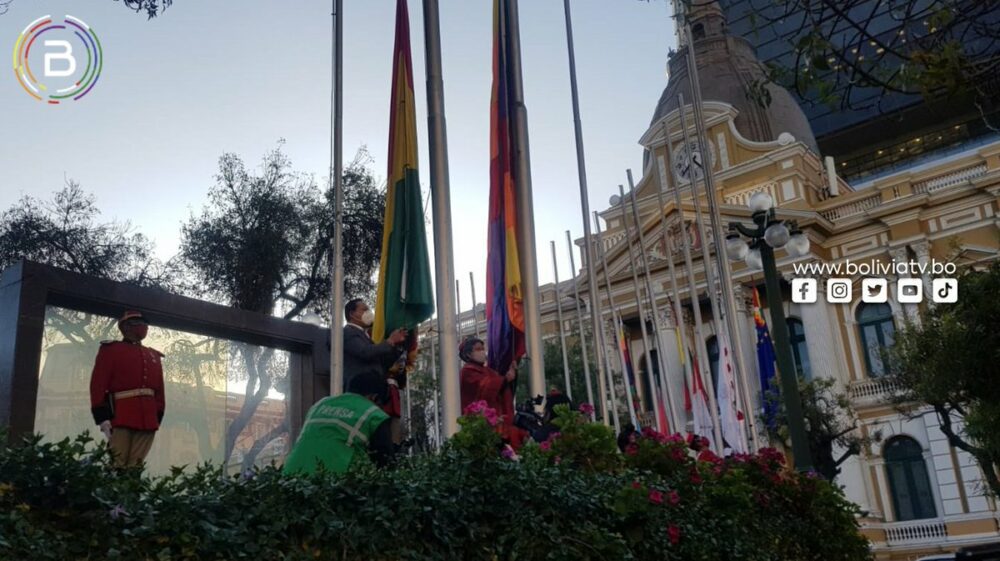 🔵#ANF | El presidente @LuchoXBolivia en los actos protocolares por el Día de la Bandera: «La historia de lucha de los pueblos que engrandece a nuestra tricolor es la misma que dignifica a nuestra wiphala. Vemos flamear a nuestras dos banderas más juntas y más fuertes que nunca». https://t.co/kKB2aITBIM