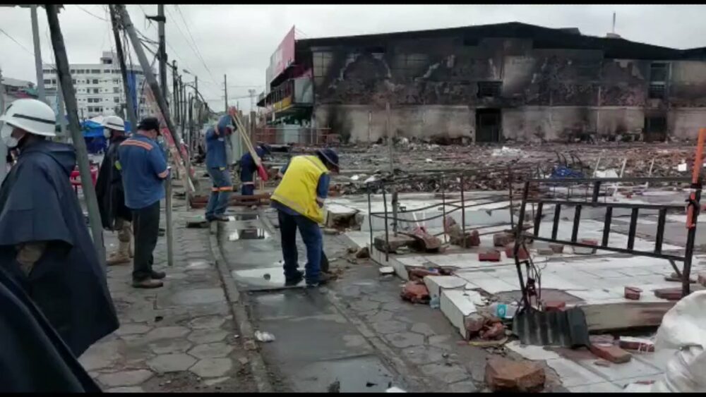 🔵 #ANF | Este miércoles comenzaron los trabajos en la zona afectada por el incendio en el mercado Mutualista, #SantaCruz. El lugar se encuentra custodiado por gendarmes municipales y efectivos militares. (Video: El Deber) pic.twitter.com/AF5fsbKj3Q