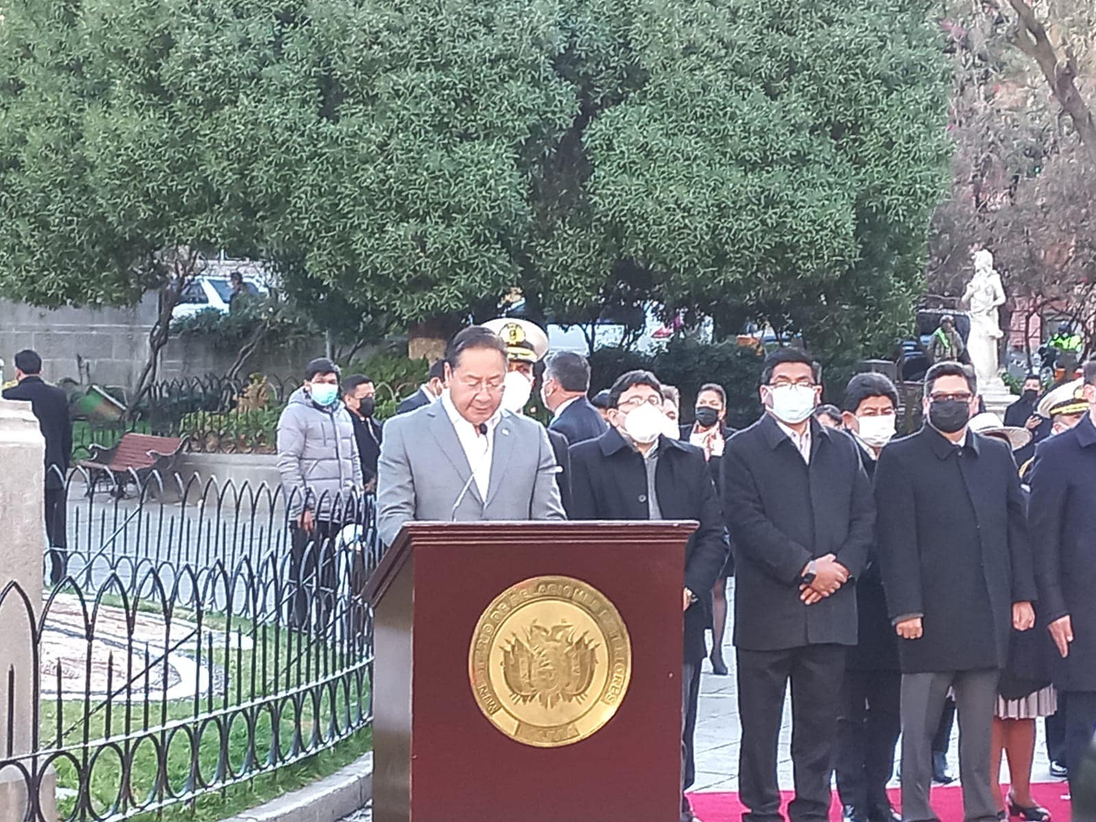 En un acto encabezado por el presidente Luis Arce, en la plaza Murillo se realizó la conmemoración del Día de la Bandera, en la plaza Murillo.
