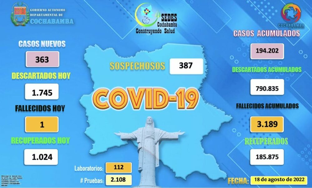 🔵 #ANF | #Salud 363 personas dieron positivo a #coronavirus este jueves en #Cochabamba. Además, una falleció a causa de la pandemia. pic.twitter.com/7JeBVeITIr