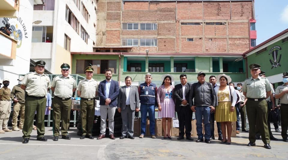 Mencionó que el equipamiento entregado será de gran aporte para la Policía Boliviana, pues consta de 61 casilleros, 33 gaveteros, 94 sillas, estantes, entre muchas otras cosas que mejorarán las condiciones de trabajo de los efectivos, y en particular para la Fuerza Especial de Lucha Contra La Violencia (Felcv), a quienes se dota de equipos de computación de última generación para robustecer la lucha contra la violencia hacia las mujeres.
