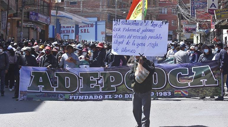 El miembro del Comité de Defensa de los Yungas, César Apaza, confirmó la convocatoria a movilizaciones al 100% de sus bases desde este lunes hasta que consigan el cierre del mercado paralelo de coca, ubicado en Villa El Carmen. Señaló que los cocaleros de Los Yungas llamaron a otros sectores, como cívicos, transportistas y médicos, a sumarse a las protestas.