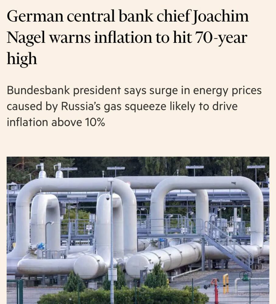 #Alemania | El jefe del Bundesbank ha advertido que la inflación alcanzará máximos de 70 años (1951) en los próximos meses. Se avecina el invierno y el BCE va exageradamente retrasado en el incremento de tasas. Va a ser una recesión muy difícil de sobrellevar. https://t.co/muUbrszyYI