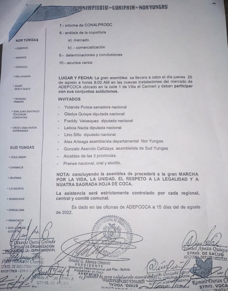 🔵 #ANF | #Sociedad Arnold Alanes emite convocatoria para una asamblea que se realizará este jueves en el mercado paralelo de coca instalado en la calle 1 de la zona Villa El Carmen, en #LaPaz. pic.twitter.com/bkmCEd7SDP