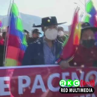 El presidente Lucho Arce y el vicepresidente David Choquehuanca desde el sector de Urujara agradecen a sectores y organizaciones sociales por participar en la «Marcha por la Democracia».