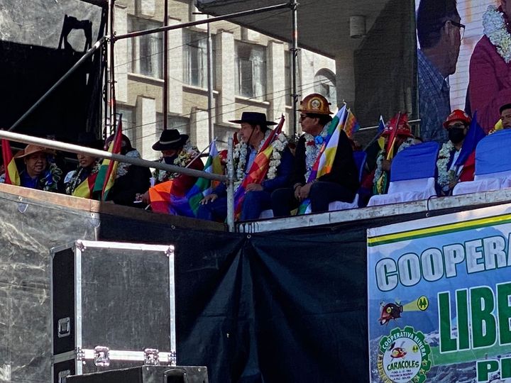 Tras más de dos horas de marcha, las organizaciones sociales afines al MAS llegaron hasta Plaza Mayor de San Francisco para dar el respaldo al Gobierno del Presidente Luis Arce y el Vicepresidente David Choquehuanca.