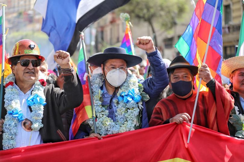 El presidente Luis Arce dijo que están más fuertes y unidos para seguir trabajando por Bolivia y que en la movilización de este jueves exigen democracia.