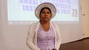 La alcaldesa municipal de Villa Tunari Segundina Orellana, informa sobre el techo presupuestario para el POA 2023.
