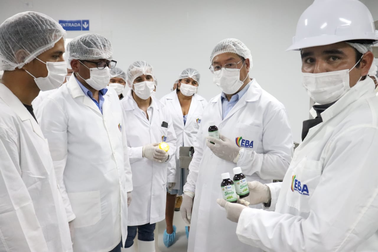 El presidente del Estado, Luis Arce, inauguró este jueves, en el mes aniversario de Cochabamba, una moderna planta de procesamiento de stevia.