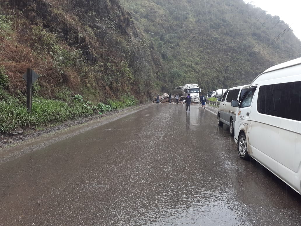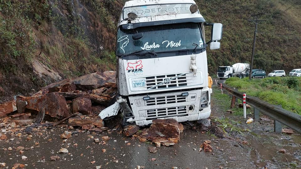 #FOTOS: Rocas cayeron sobre un camión cisterna y provocó congestión vehicular en la vía al Oriente El camión terminó co…