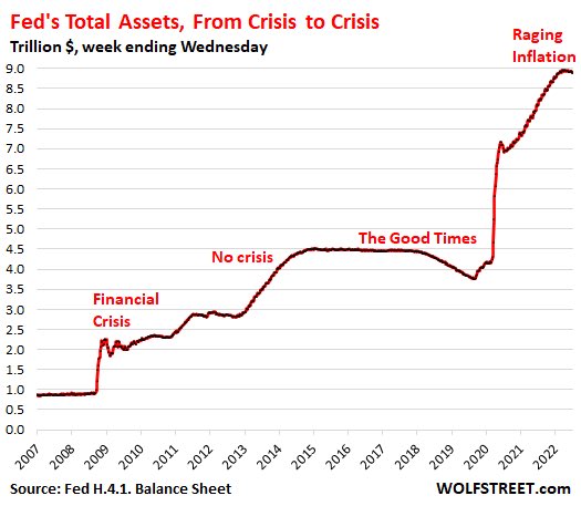 El Quantitative Tightening (QT) de la Reserva Federal que ven los mercados y con la que se guían a corto plazo, y la broma que representa si el QT es observado con una perspectiva de ciclos económicos. Si quieren controlar inflación en serio, el camino por recorrer es infinito. https://t.co/vQJH0t6UKR