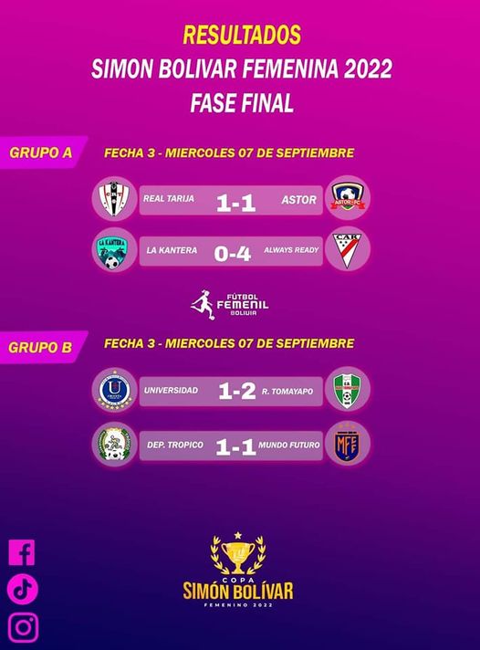 Resultados de la última fecha de la fase final de la Copa Simón Bolívar Femenino 2022