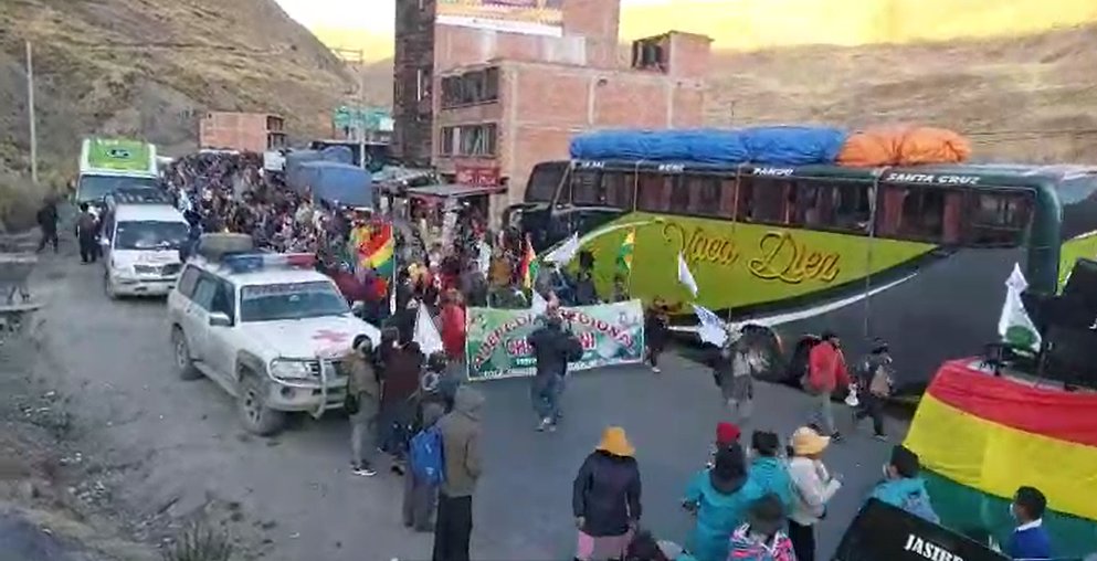 🔵 #Ăšltimo | #Sociedad Cientos de cocaleros de Adepcoca arriban a la tranca de Urujara en #LaPaz. Exigen el cierre del mercado ilegal de coca en Villa El Carmen y lanzas estribillos contra Arnold Alanes. «¡Los Yungas está emputado! ¡Esto es mayorĂa» https://t.co/ER5SpzSL8j