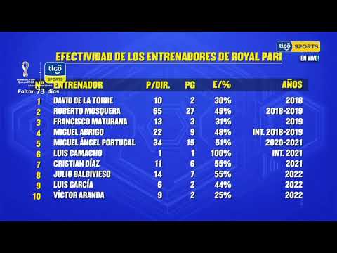 Este es el cuadro de efectividad de los entrenadores de Royal Pari.