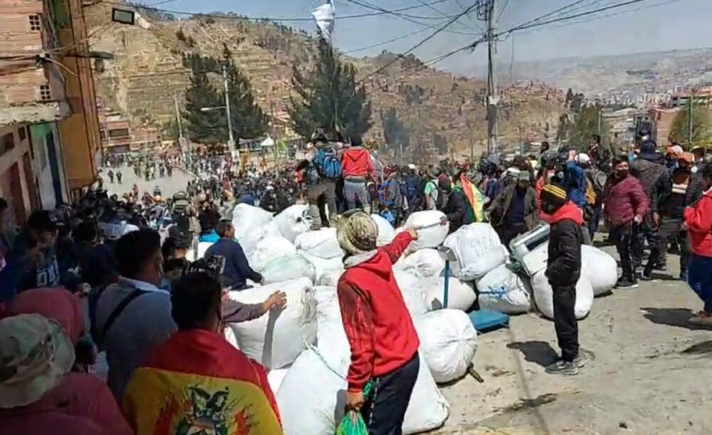 🔵#EnDirecto | #Ultimo La Policía se retira de Villa El Carmen de #LaPaz. Cocaleros toman el mercado paralelo de Arnold Alanes y sacan a la calle taques de coca que estaban al interior de ese centro de acopio. Siga la transmisión aquí👇